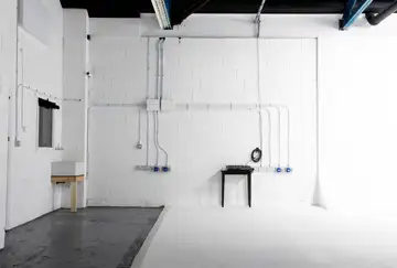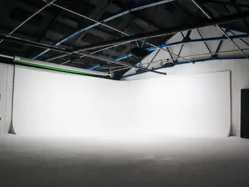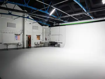 A 1,670sqft open plan studio with a pre-lit 8m x 8m white infinity cove and drive-in access.