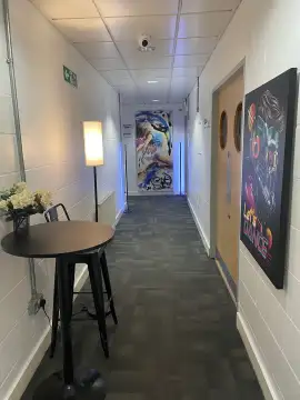 Have exclusive use of Studio 5, which is 3.3 x 2.8m (100 sq ft) in size with sound system, dimming and ambience lights. Perfect for 1-1 sessions, music/singing rehearsals.. Can hold 3 people.